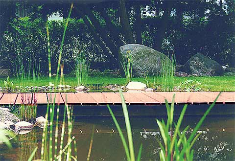 Der Garten ist stilistisch an die moderne Architektur des Hauses angepasst. Die großzügige Terrassenanlage erweitert den Wohnraum nach außen. Eine gelungene Symbiose von Haus und Garten.