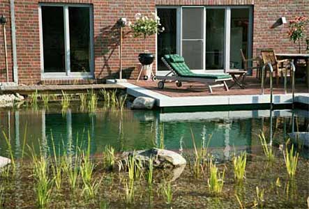 Naturpool im architektonischen Stil mit natürlichen Pflanzbereichen