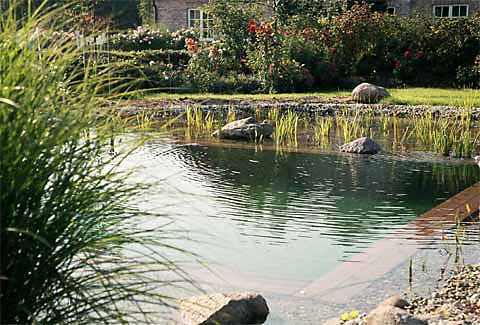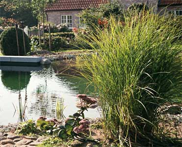 Im Vordergrund ist der Schwimmbereich zu sehen. Daran angrenzend die noch junge Pflanzzone.