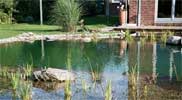 Klinkerstein mit Granit und Holz, geradlinig mit Freiform.